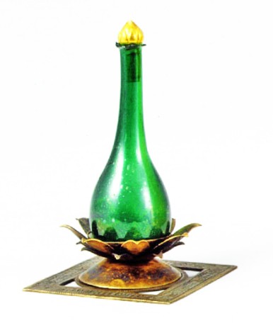 ▼1965년에 해체된 익산 왕궁리 오층 석탑에서 발견된 금제 사리내함, 금마개의 유리 사리병의 사리장엄구