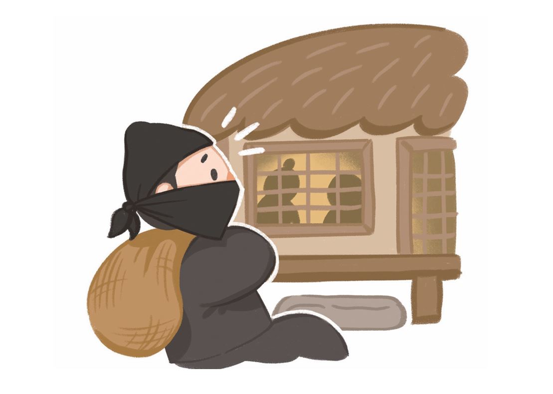 그러자 도둑놈은 오금이 저려 아무것도 훔치지 못하고 줄행랑을 치고 말았어요.